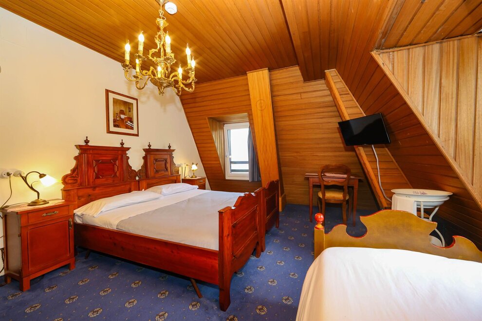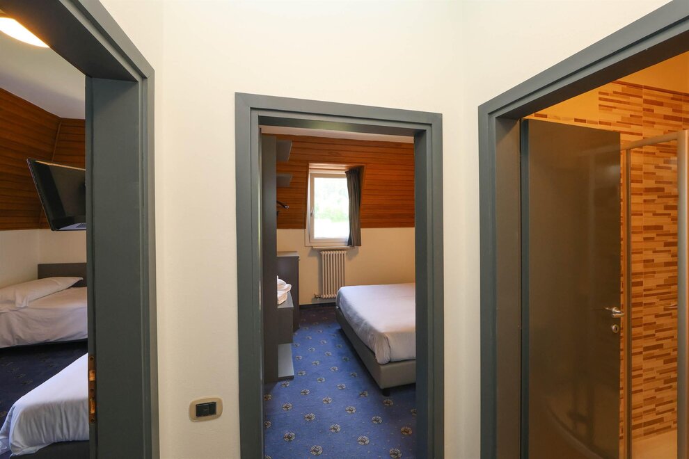 Комната Superior с соединением: представьте, что вы переступаете порог действительно особенной комнаты с соединением, убежища, где элегантность переплетается с комфортом и практичностью. Это не просто номер в отеле, а уникальный опыт, с незабываемым акцентом, созданным крышей с открытой конструкцией. Комната предлагает достаточно пространства для того, чтобы расслабиться и свободно передвигаться. Естественный свет наполняет помещения через окна, создавая теплую и уютную атмосферу. Но настоящая изюминка — это открытая крыша с ее внушительными балками, спускающимися сверху, добавляющими архитектурный элемент великого очарования. Современные удобства, безусловно, не упущены, они продуманы для того, чтобы ваше пребывание было максимально приятным. Две комнаты соединены общей ванной комнатой, которая хорошо оборудована и содержит всё необходимое. Эта комната с соединением идеально подходит для семей, групп друзей или пар, желающих иметь пространство и приватность, не отказываясь от удобства общего окружения.