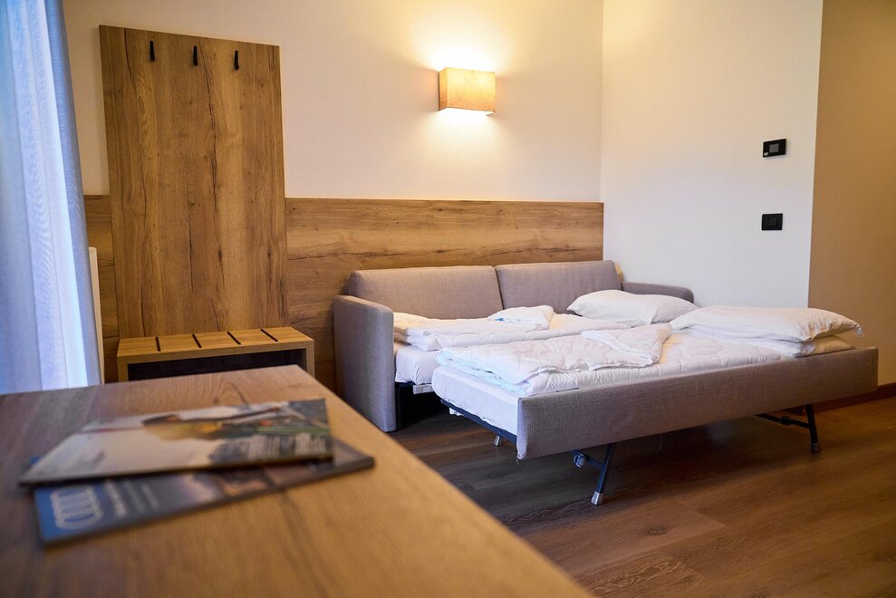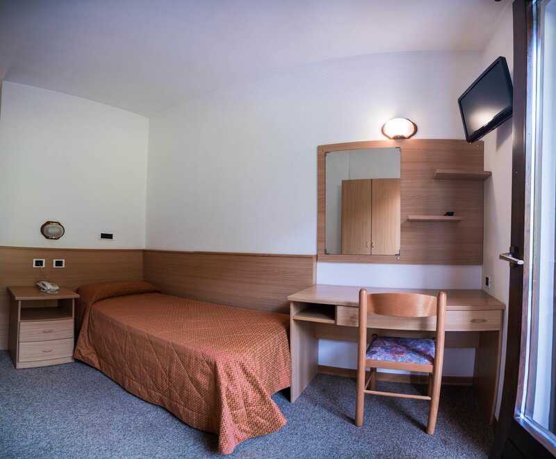 Идеальная комната для нужд и отдыха одного человека (около 14-16 квадратных метров). Все эти номера оборудованы собственным санузлом с феном и душевой кабиной, прямым телефоном с выходом на улицу, ЖК-LED-телевизором с международными каналами, сейфом и подключением к интернету по Wi-Fi. Все номера имеют балкон, кроме некоторых, которые оборудованы окном. В стоимость входит проживание и завтрак "шведский стол" с типичными продуктами Трентино и доступ ко всем услугам, предлагаемым отелем.
