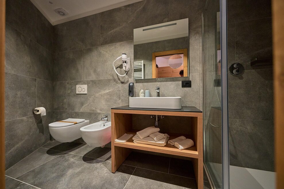 Добро пожаловать в наши уютные номера Делюкс Адамелло, отличающиеся теплыми цветами и безупречным вниманием к деталям. Современный дизайн с деревянной меблировкой и полами создает привлекательную и утонченную атмосферу. Каждый номер оборудован мини-баром, просторной ванной комнатой с душем и предлагает потрясающий панорамный вид. Вы можете выбрать между кроватью King или двумя односпальными кроватями для вашего удобства. Кроме того, вы найдете LED-телевизор размером 32" для вашего развлечения и выделенную парковку. Наши номера могут разместить до 2 человек и имеют площадь около 21 м².