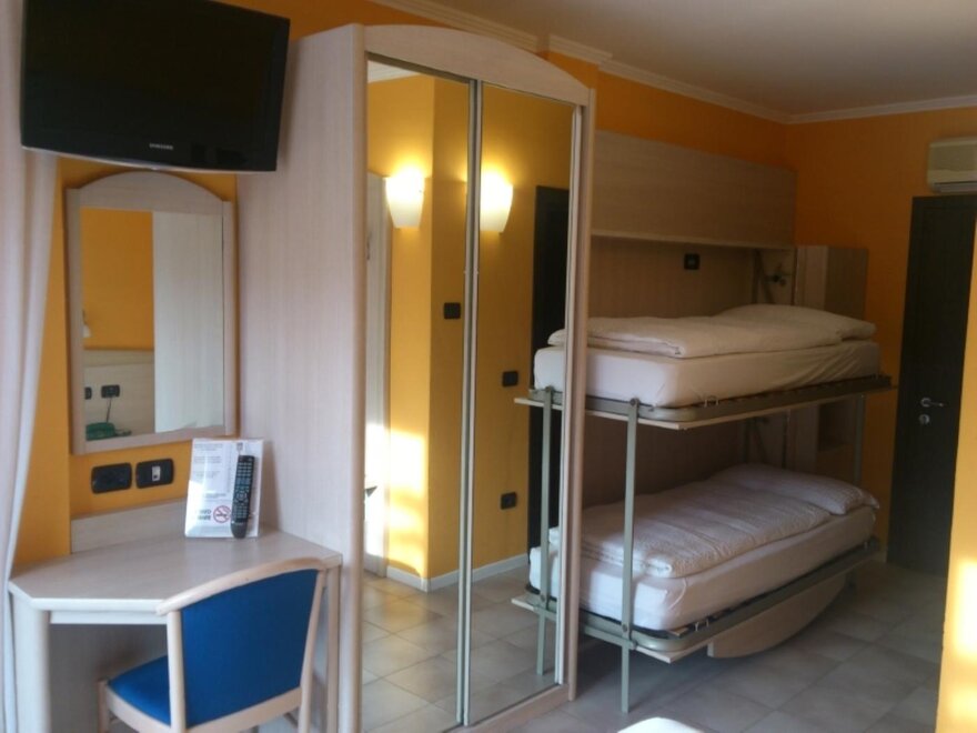 Семейный номер (тройной и четверной): Уютный номер в современном стиле, идеально подходящий для семей с детьми, с двуспальной кроватью или 2 отдельными кроватями и раскладным диваном или двухъярусной кроватью. В номере есть спутниковое TV, сейф, прямой телефон, Wi-Fi, мини-бар по запросу и просторная ванная комната с душем, феном и мягким махровым бельем. Большинство номеров оборудованы кондиционером и балконом по запросу.