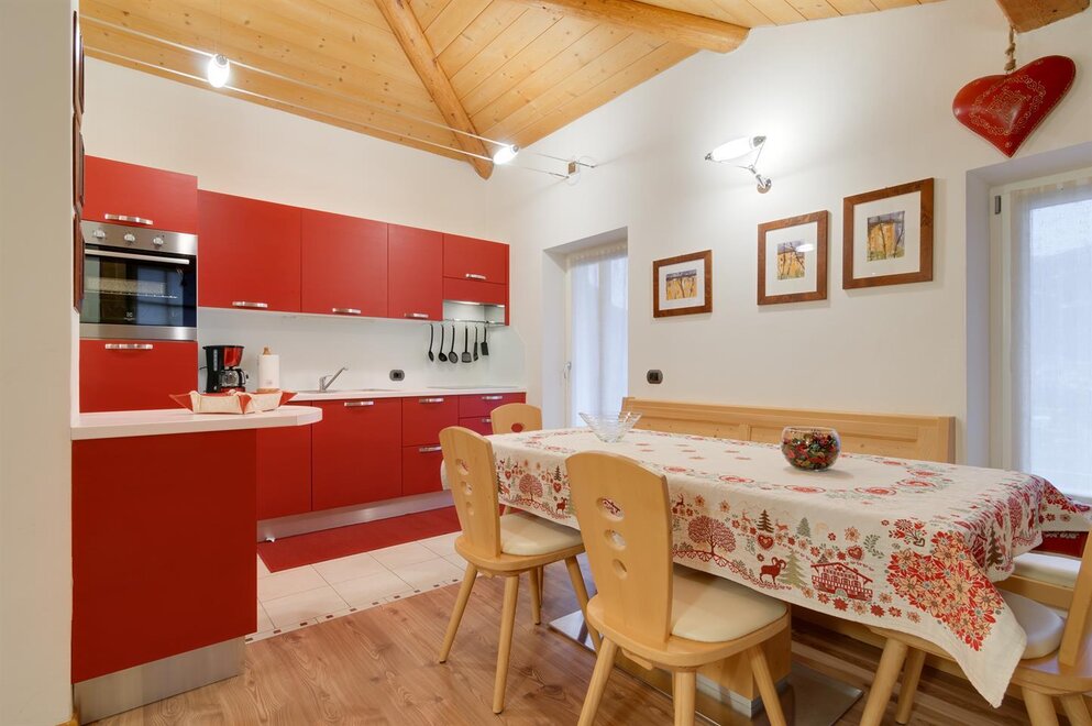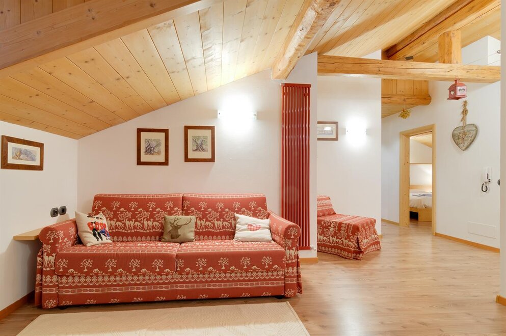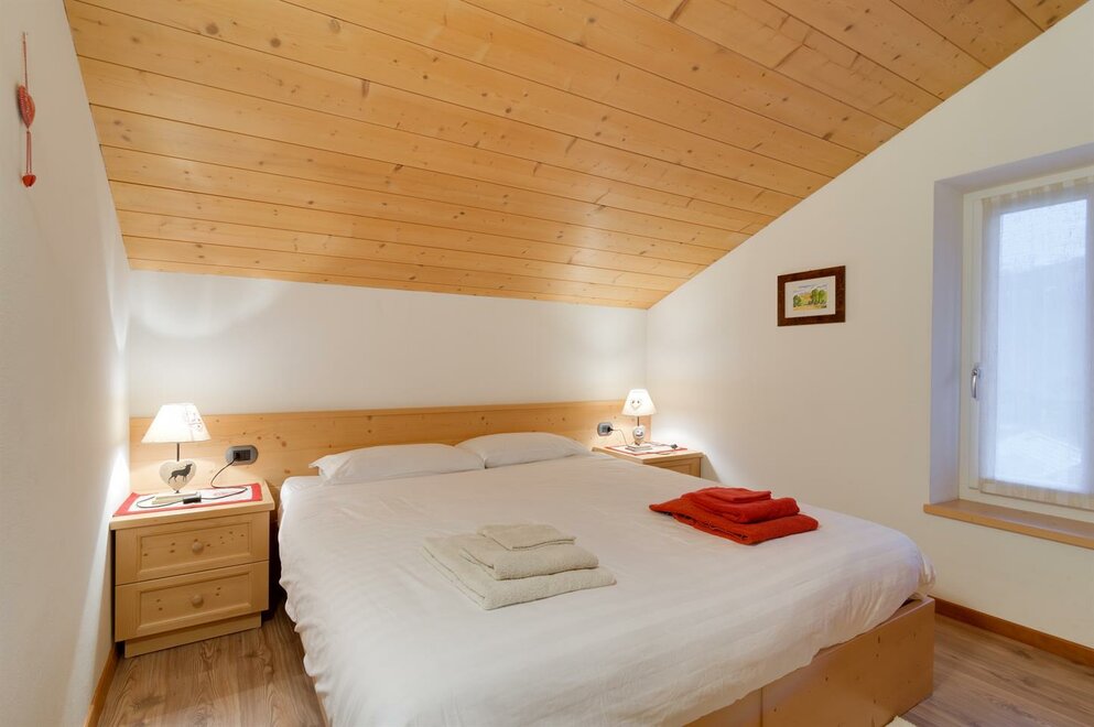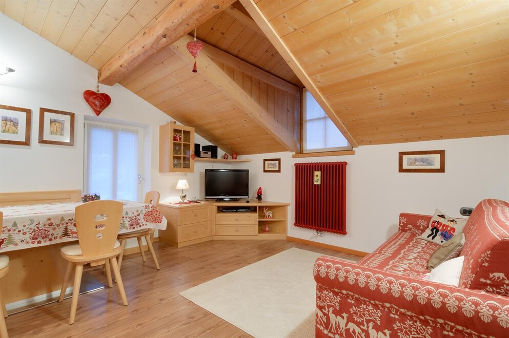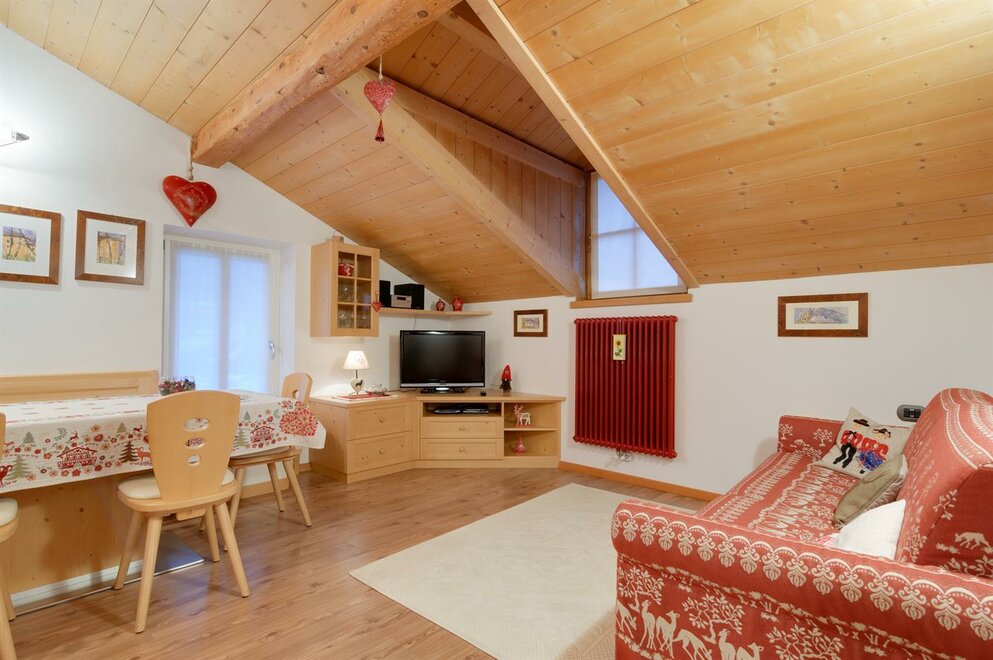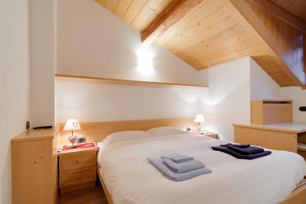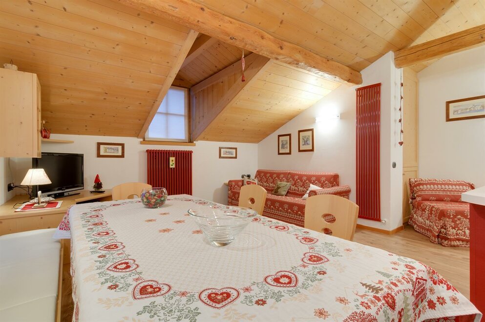 Квартира в мансарде с кухней и жилой зоной, спальня с двуспальной кроватью и трёхместная комната с возможностью установить двуспальный диван-кровать и раскладное кресло в гостиной, собственная ванная комната. Квартира тщательно меблирована и расположена в центре Тезеро с панорамным видом на горный хребет Лагорай