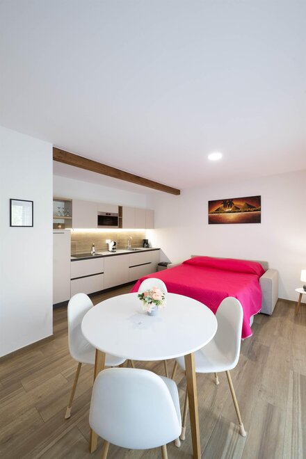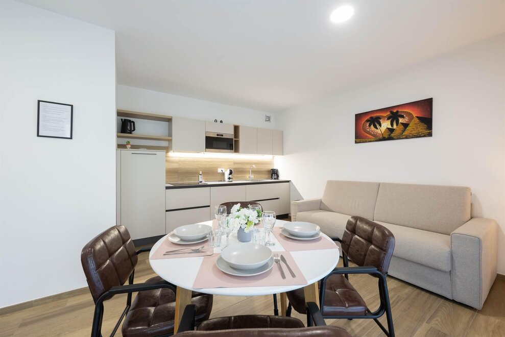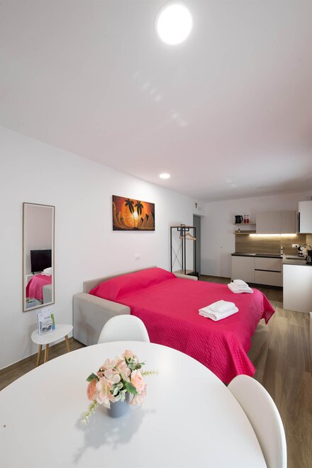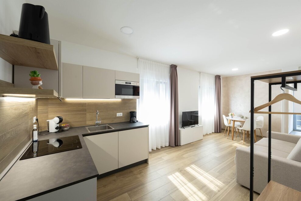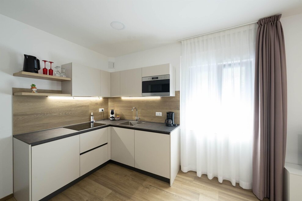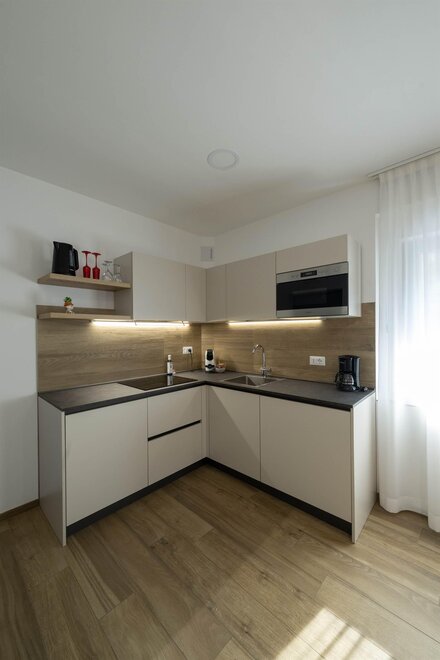балкон, кухонная раковина, полотенца, чайник, стиральная машина, микроволновая печь, отдельная спальня / гостиная, обогреватель, фен, кофеварка, посуда в наличии, Предметы первой необходимости (Полотенца, простыни, мыло и туалетная бумага), комбинированная микроволновка, семейный номер /апт., перины, кафельный или мраморный пол, Midweek cleaning only on request - for a fee, ТВ, электрическая плита, кухонная посуда, apartment without fitted carpet, холодильник, постельное белье в наличии, современная мебель, seasonal rental too (summer), seasonal rental too (winter), crockery and cutlery , шкаф, использование стиральной машины, розетка рядом с кроватью, кухня, linen provided , мини-косметика в номере, туалет, прачечная, отдельная спальня(и): 1, Wi Fi