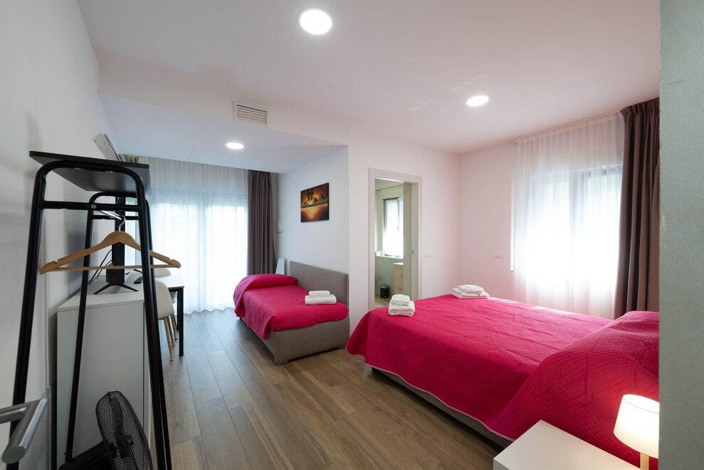 С простой, но функциональной мебелью, он состоит из двух отдельных комнат: спальня с 1 двуспальной кроватью и гостиная с кухней, оборудованной диваном-кроватью, телевизором и двумя балконами.В ванной комнате есть душ, фен, мягкие полотенца и туалетные принадлежности.