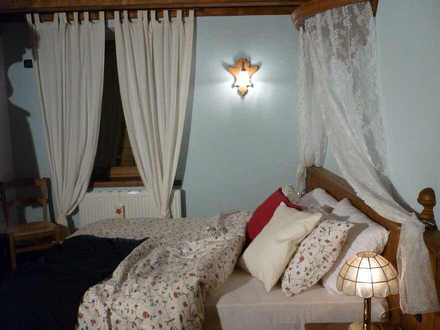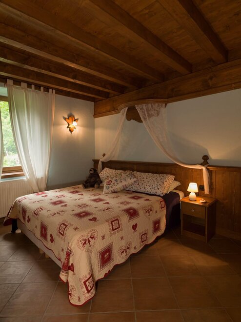Номера с видимыми балками просты, тихи и комфортны, обставлены из натурального массива дерева и выходят на окружающие леса и луга. Кровать ориентирована головой на север, все номера оснащены «необходимым» электрическим оборудованием, которое не создает вредных электромагнитных полей для отдыха и здоровья. Ванные комнаты с душем полностью укомплектованы полотенцами, фенами и туалетными принадлежностями для гостей. Возможность добавления третьей кровати и детской кроватки. В каждом номере есть уголок для чаепития и туристические и информационные материалы.