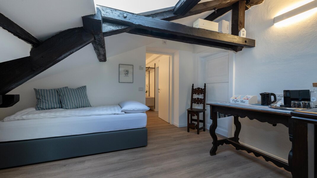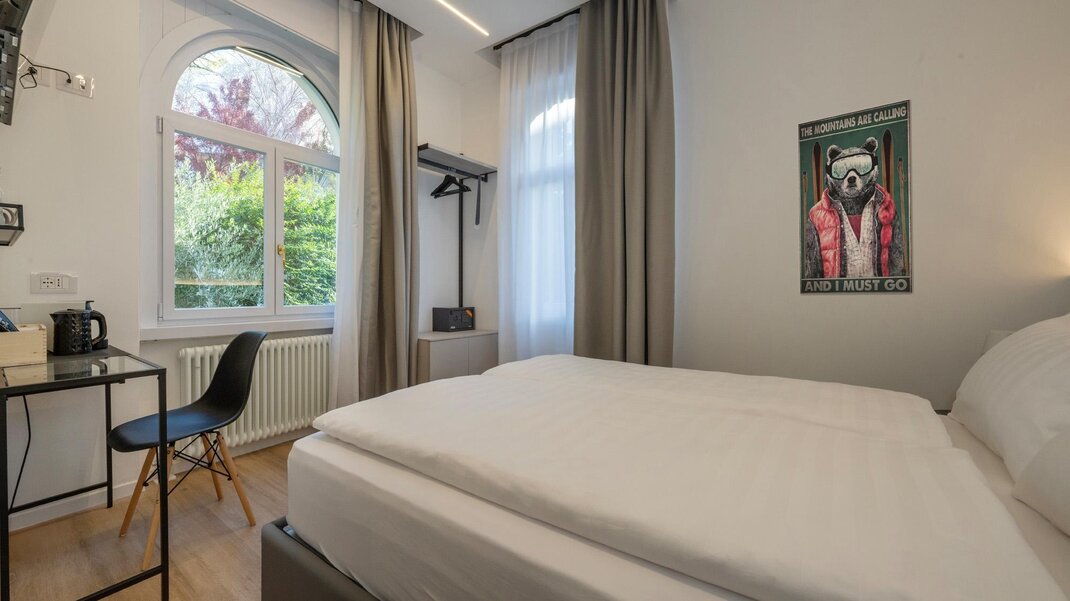 Двухместный номер с диваном-кроватью, оборудованный отдельной ванной комнатой с душем, биде, феном, бельем и комплектом для ухода. Этот климатизированный двухместный номер оснащен телевизором с плоским экраном и кабельным телевидением, шкафом, письменным столом, сейфом и набором для приготовления чая и кофе. В номере могут разместиться до 3 человек.