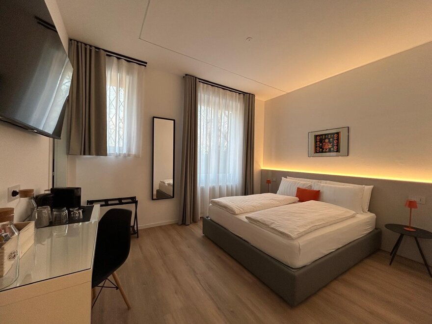 Номер с двуспальной кроватью и собственным ванной с душем, биде, феном, постельным бельем и туалетным набором. С кондиционером, номер оборудован кабельным телевизором с плоским экраном, письменным столом, сейфом, набором для приготовления чая и кофе и печеньем.