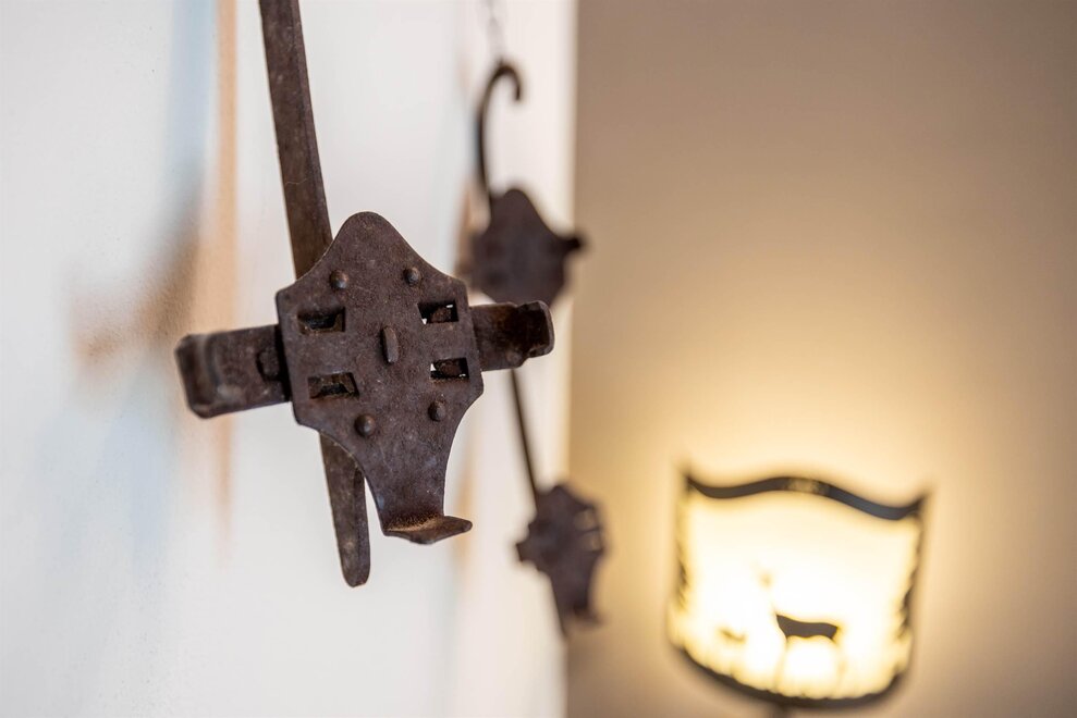 Старая колесо от повозки, коровий колокол, грабли будут характерными для того, что есть КОМНАТА ДЛЯ ФЕРМЕРА, состоящая из двуспальной кровати, удобного уголка для готовки, мини-холодильника, микроволновой печи и электрического чайника; всё освещается большим приватным террасом и комфортным балконом.