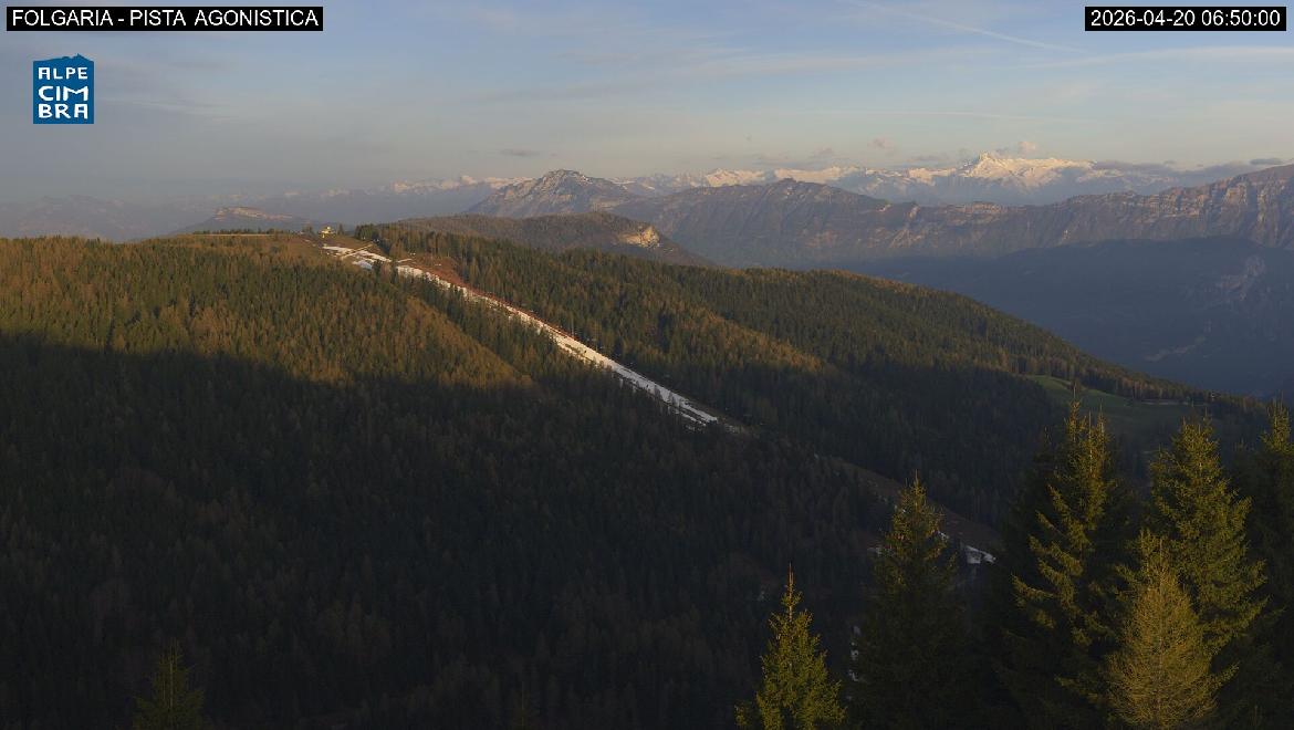 the Folgaria plateau, framed by forests and the Trentino peaks;